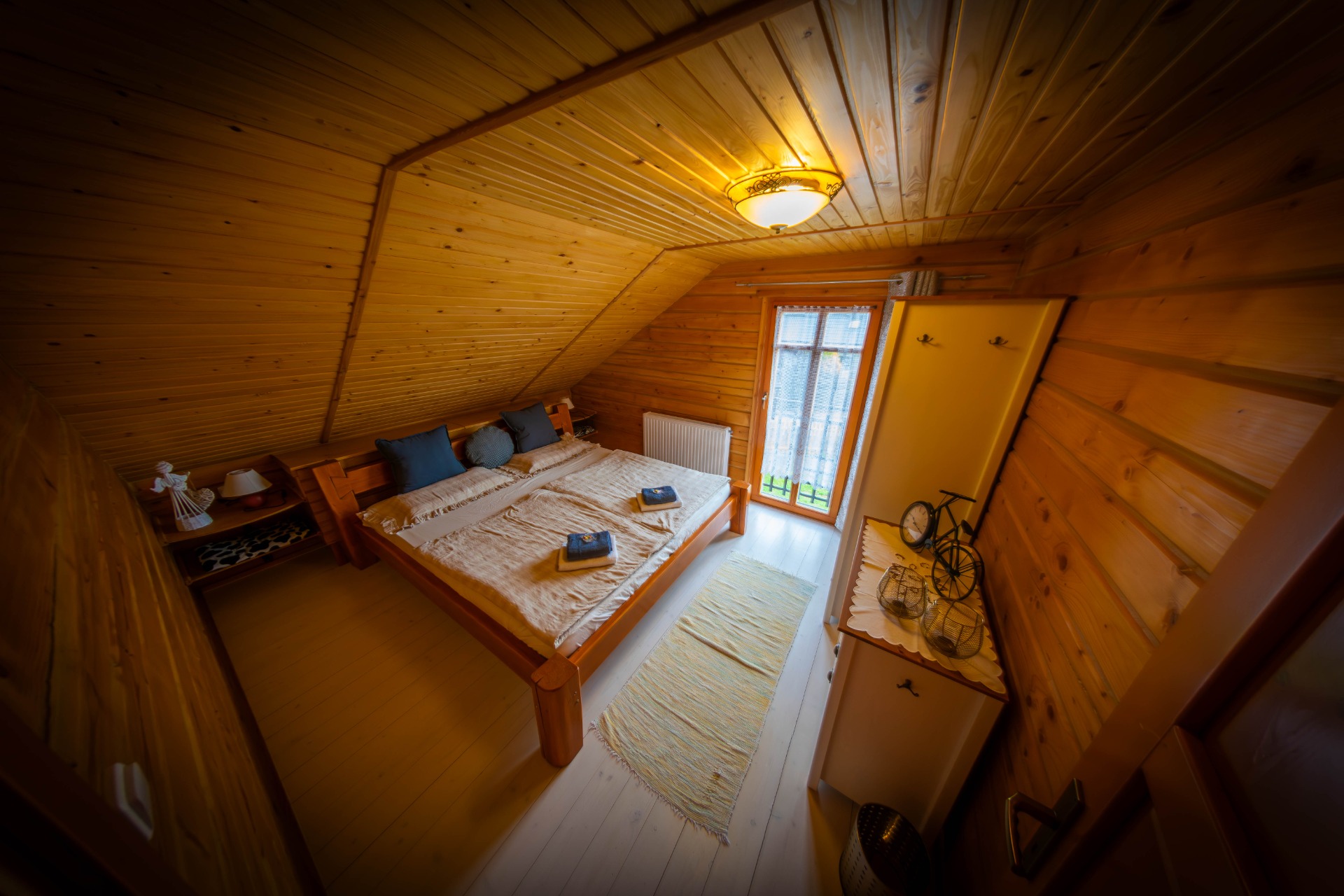 Po schodech nahoru se dostanete do ložnice s plně vybavenou kuchyní a jídelním stolem, takže připravit jídlo či občerstvení lze přímo v patře. V této místnosti jsou také 2 samostatné postele a 2 kvalitní a volně stojící matrace pro uložení např. Vašich dětí.