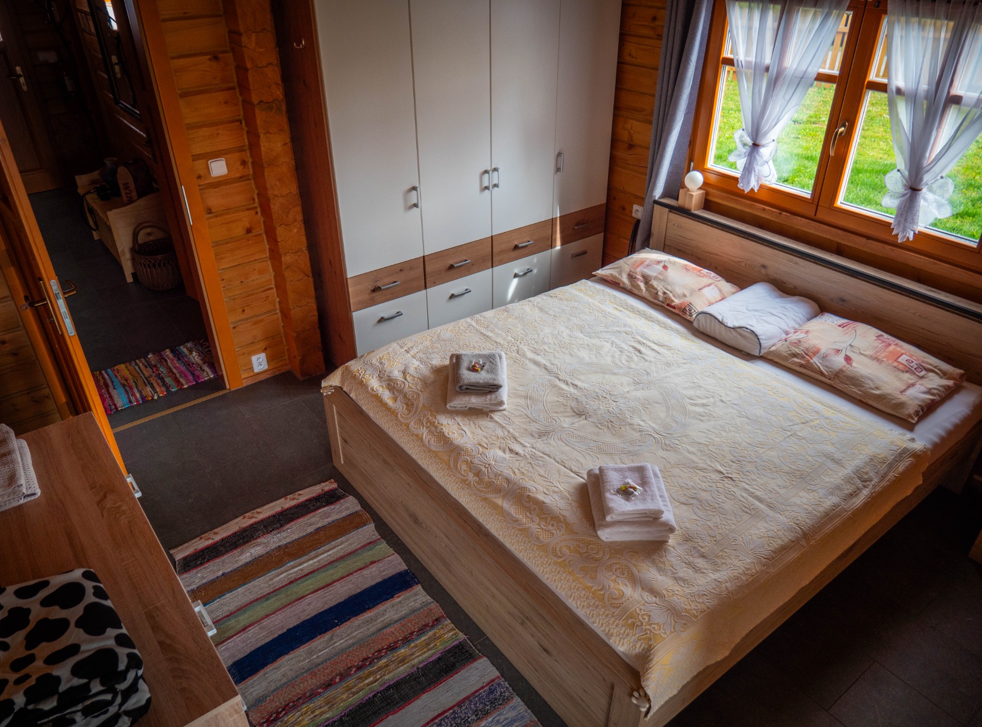 V oddělené části přízemí se nachází ložnice s manželskou postelí. Je zde také 5 dvéřová skříň a komoda pro uložení Vašich věcí. Z přízemí ložnice je přímý vstup na terasu domu a dále k přilehlému bazénu.